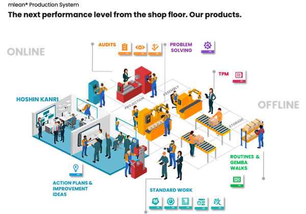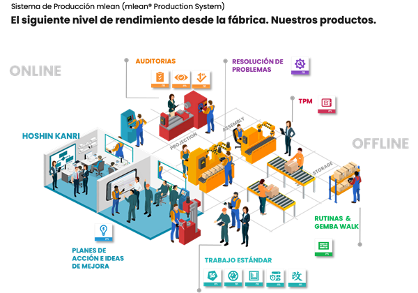 mlean® ha creado un sistema digital para las operaciones industriales con una solución elegante, el sistema de producción mlean (mlean® Production System - mPS). El sistema más completo y totalmente integrado que digitaliza y centraliza los procesos de mejora continua desde la fábrica.